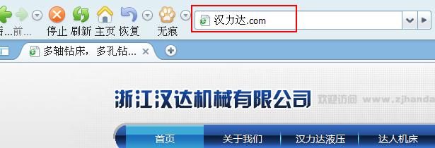 為方便客戶查看我司網(wǎng)站,我司申請了中文域名"達(dá)人機床.com“"漢力達(dá).com",您只要在地址欄中輸入 "達(dá)人機床.com" 或者"漢力達(dá).com”即可訪問到浙江漢達(dá)機械有限公司的官方網(wǎng)站。