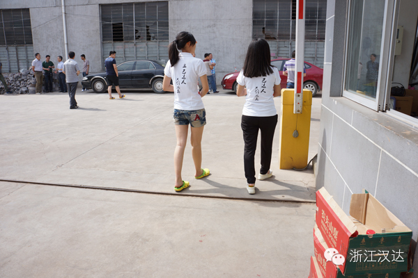 九點整,縣安監(jiān)局各企業(yè)陸續(xù)到達浙江漢達,一時間竟造成交通擁堵。公司趕緊派了行政部兩大帥哥在路口指揮交通,臨時從營銷中心“借用”的兩位美女則在門口協(xié)助引導(dǎo),并及時送上礦泉水。