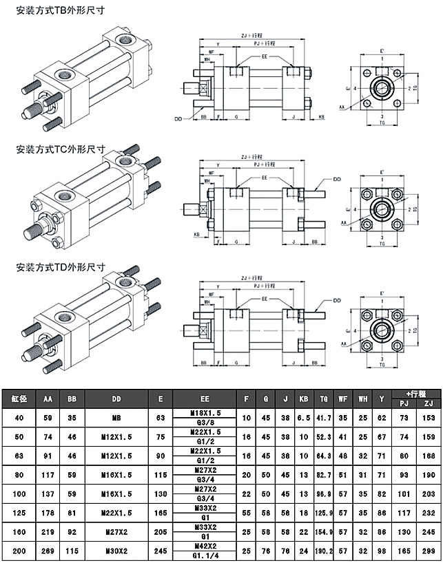 以下為YGD標(biāo)準(zhǔn)液壓缸TB\TC\TD四拉桿液壓缸具體參數(shù),客戶可按照以下圖表來(lái)選型。