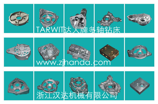 該產(chǎn)品可廣泛應(yīng)用于機(jī)械行業(yè)多孔零部件的鉆孔及攻絲加工,如汽車、摩托車多孔零部件、發(fā)動(dòng)機(jī)箱體、鋁鑄件殼體、制動(dòng)鼓、剎車盤、轉(zhuǎn)向器、輪轂、差速殼、軸頭、半軸等,泵類、閥類、液壓元件、太陽能配件等等。比如以下工件: